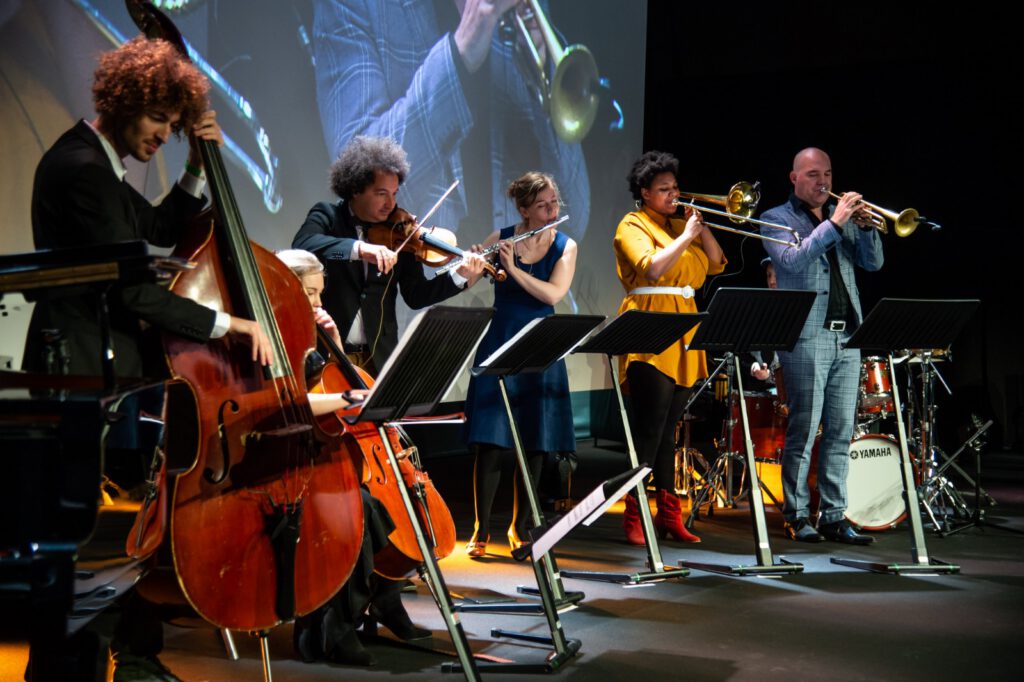 Een flexorkest. Samengesteld uit veelzijdige musici die zowel klassiek spelen als lichte muziek. Onder leiding van Amir spelen ze hier in Barcelona een bewerking van het Tweede pianoconcert van Tsjaikovski. Dat was een verzoekje, vlak voor het concert.